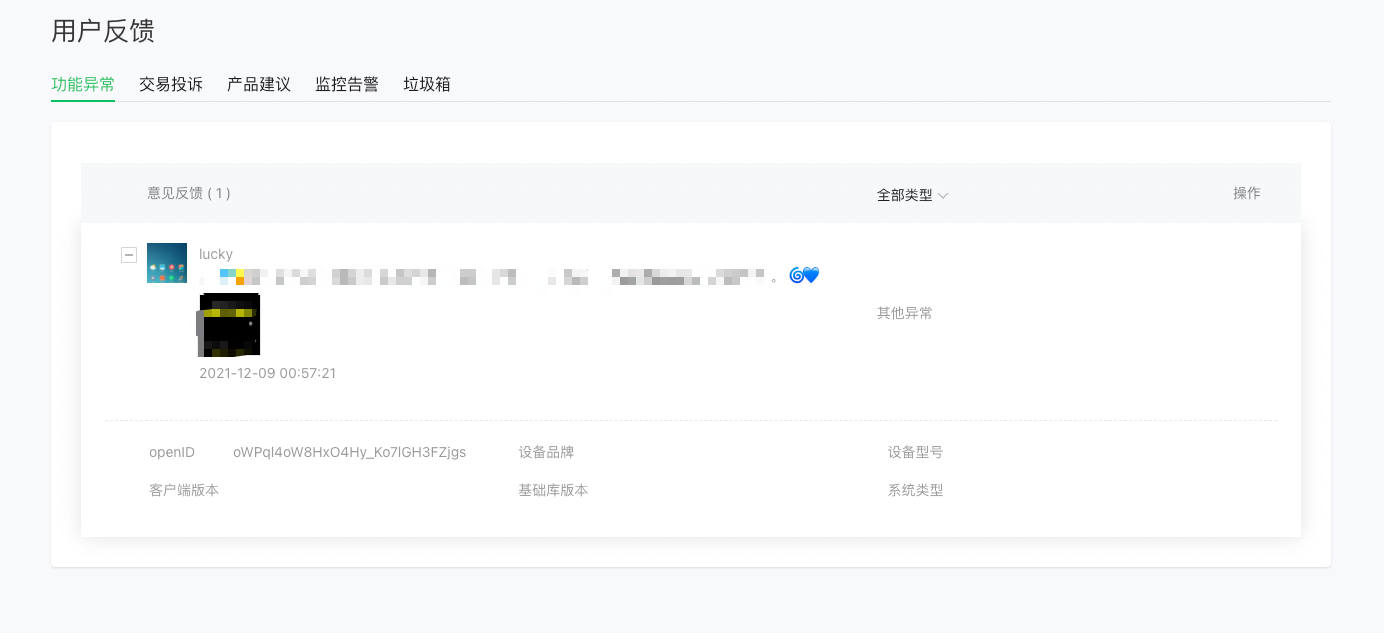 小程序用户反馈中有用户向我们发送恶意广告如何举报