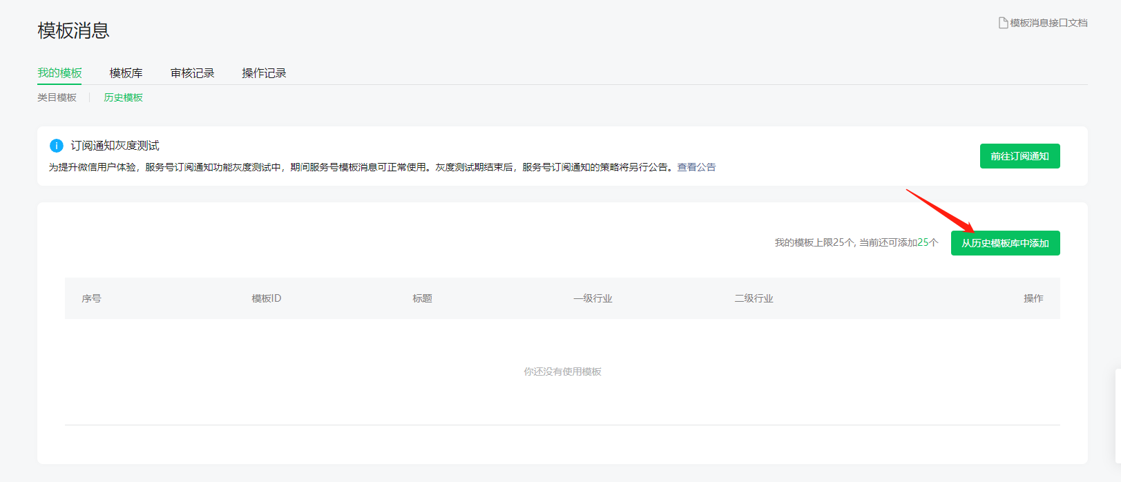 新注册的公众号无法添加之前整理出来的模板