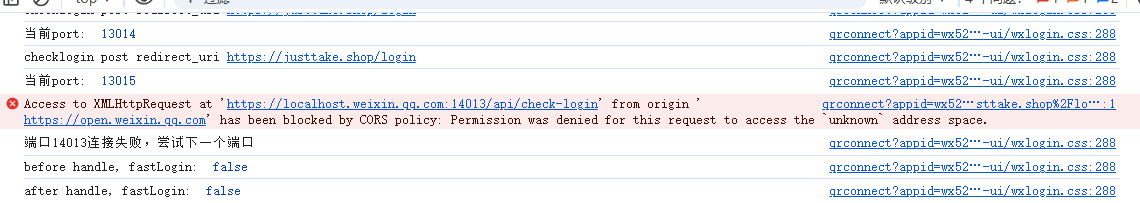 微信快速登录功能-快速登录无需扫码,之前是能用的,现在突然不好使了,排查以后发现这些请求都跨域了?后面的端口是域名的一部分?