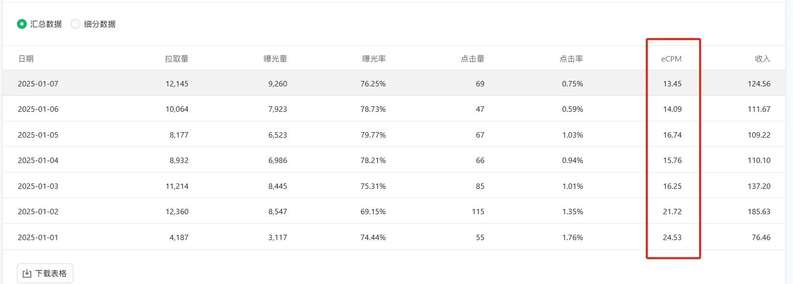 不懂就问,请问这个ecpm是什么,为什么每天都下降。