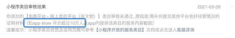 电商类的评分普遍都比较低,淘宝京东不过几十万,你如果这么要求,百分百的拍卖小程序都不够,都应该不给通过!!