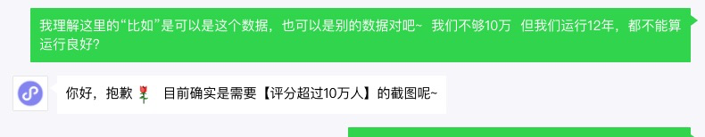 要求我们这么小众的业务十万评分也太过分了吧~ 这一条要求App Store十万评分实在是毫无依据?