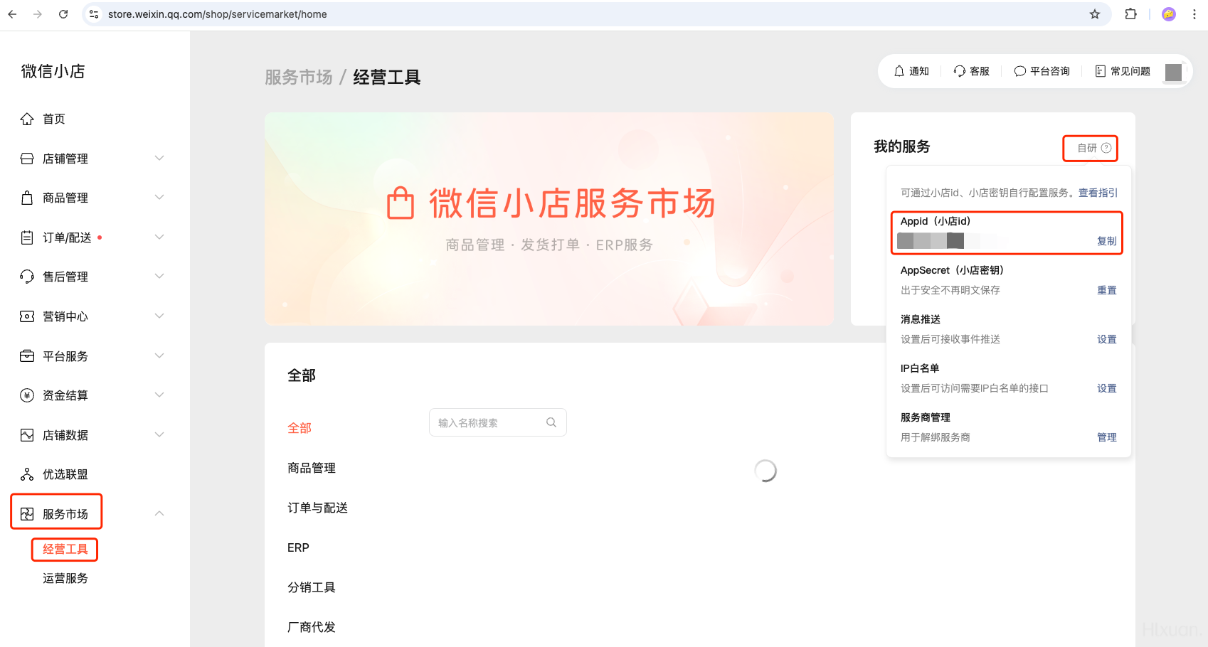 怎么查看Appid (小店id),服务市场没有【经营工县】