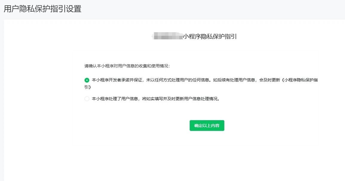 后续发版的时候,可以在代码提审页面底部完善用户隐私保护指引,审核通过且发布上线即可生效。