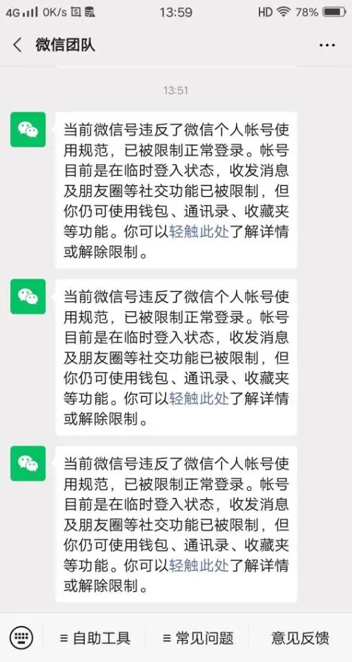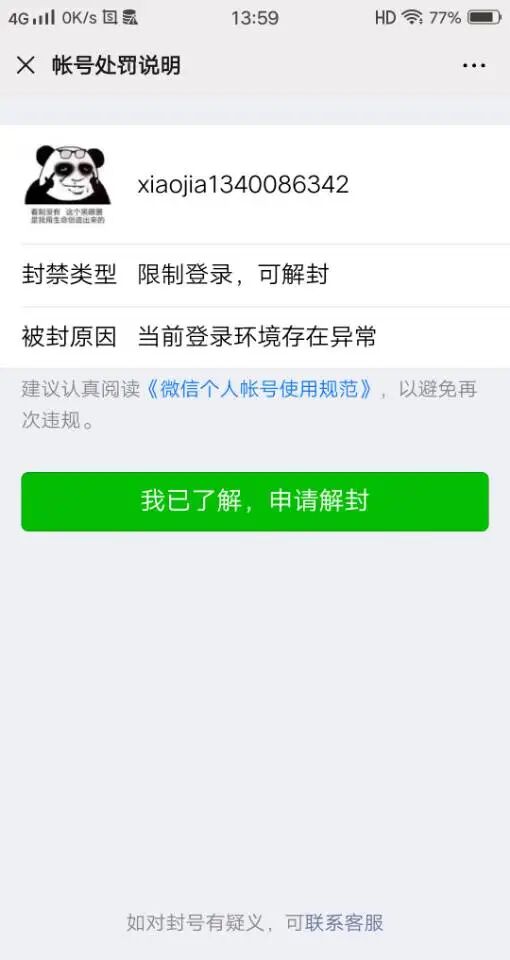 微信被封不知道什么原因,解封一次使用两天又被封,而且同样也没有发什么消息,求解封微信xiaojia1340086342
