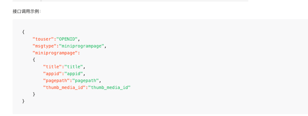 发小程序只传实例中参数即可,你标记的那些是其他类型的消息用的