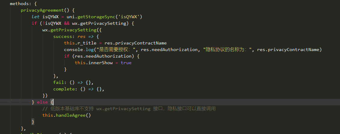 你好,若是授权第三方开发的小程序,建议让开发者单独提交下用户隐私协议审核通过后,再重新查看下接口状态,详情可参考:
