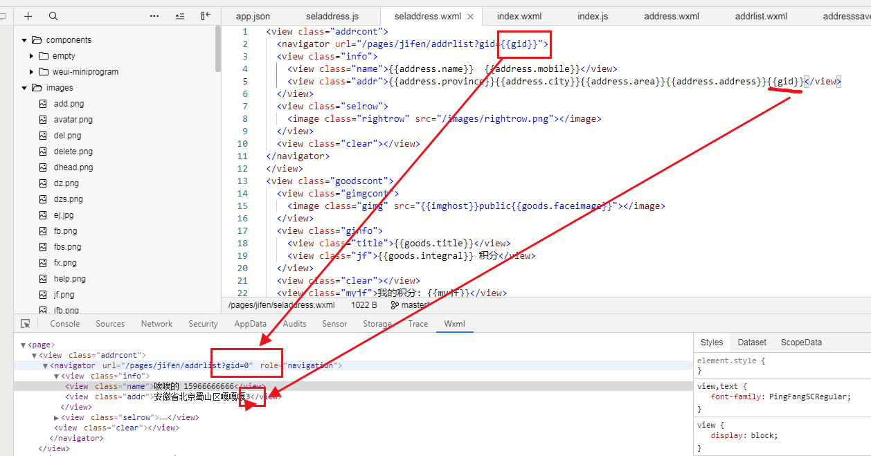 如上图所示 在navigator组件里url属性中的gid没有显示渲染后的值,而是原始值0 而 在地址后面跟的gid显示的是渲染后的值,这是为什么