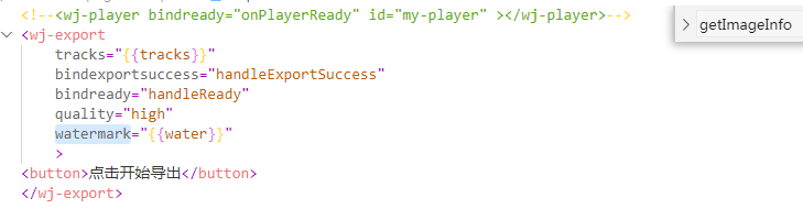 请问有使用微剪的朋友知道如何在wj-export组件中的watermark属性使用本地链接?因为我的水印文件是在用户端生成的图片,不是网络图片,但watermark属性只要不是网络图片链接就会报错,请问有办法解决吗?下面是报错的情况,只要是本地链接就提示没有找到“tempFilePath”,估计是限定了必须自动取链接中的“tempFilePath”?卡了很多天,希望知道的朋友能指点一下,先谢谢了