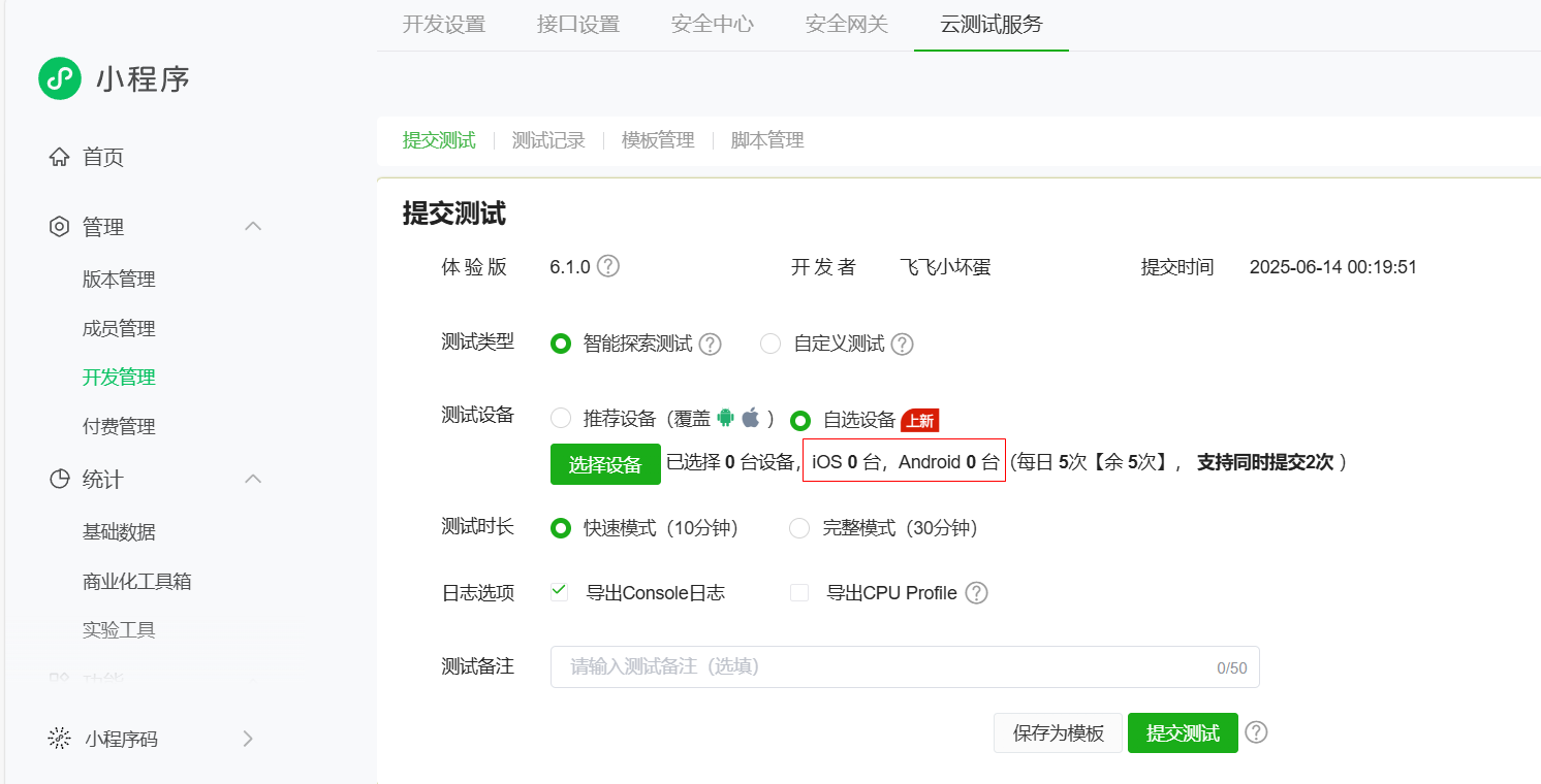 1、建议官方在“开发管理”的“云测试服务”中提供几台平板电脑。作为一个微信小游戏开发者,难免需要兼容平板电脑,偏偏自己手里又没有平板电脑,这叫我如何测试自己的微信小游戏是否兼容平板电脑。我可不会为了测试微信小游戏去购买一台平板电脑,毕竟平常又不使用平板电脑。