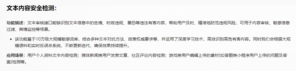 https://developers.weixin.qq.com/miniprogram/dev/framework/operation.html#%E5%86%85%E5%AE%B9%E5%AE%89%E5%85%A8%E8%A7%A3%E5%86%B3%E6%96%B9%E6%A1%88
