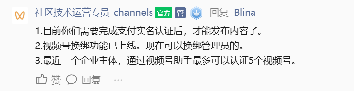 显示视频号管理员完成实名后才可以发布视频,但是管理员微信支付已经实名、视频号已经实名的情况下还是不能发布