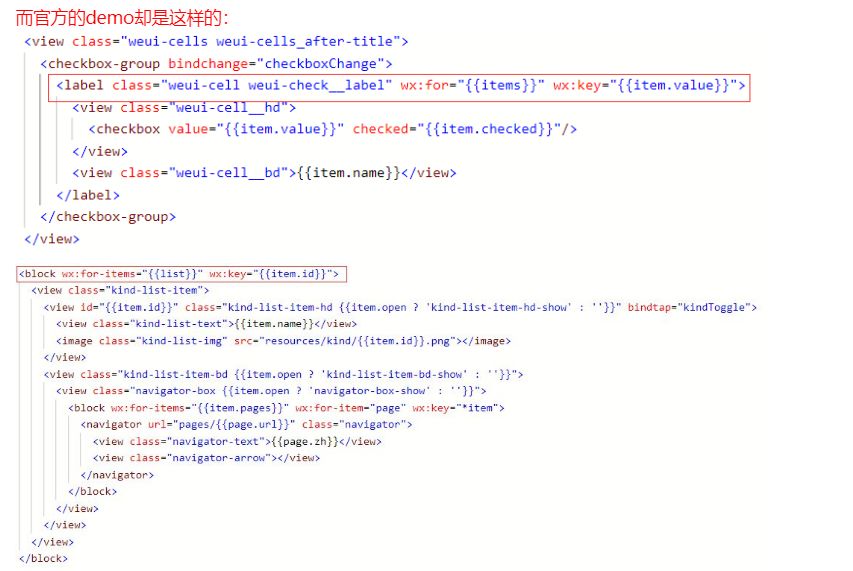 <viewwx:for="{{array}}"wx:key="someProp">但是官方提供的小程序demo程序里面的源码却是这样用的![]()