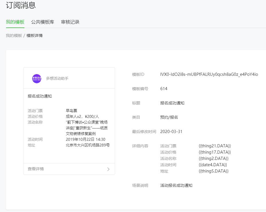 模板上的活动名称都30几个字符了,可是实际thing2那个字段就限制了20个字符,是不是有点少呀