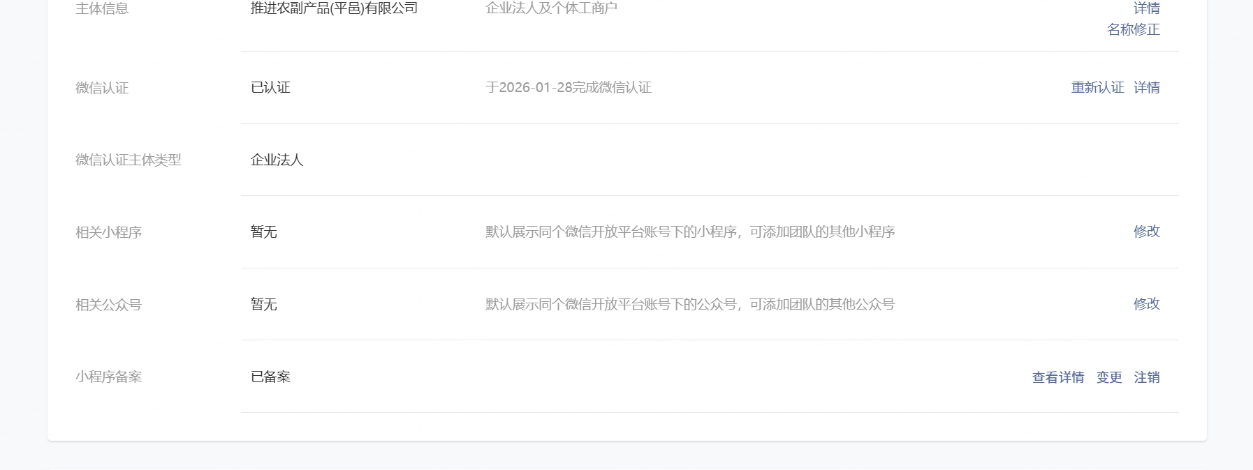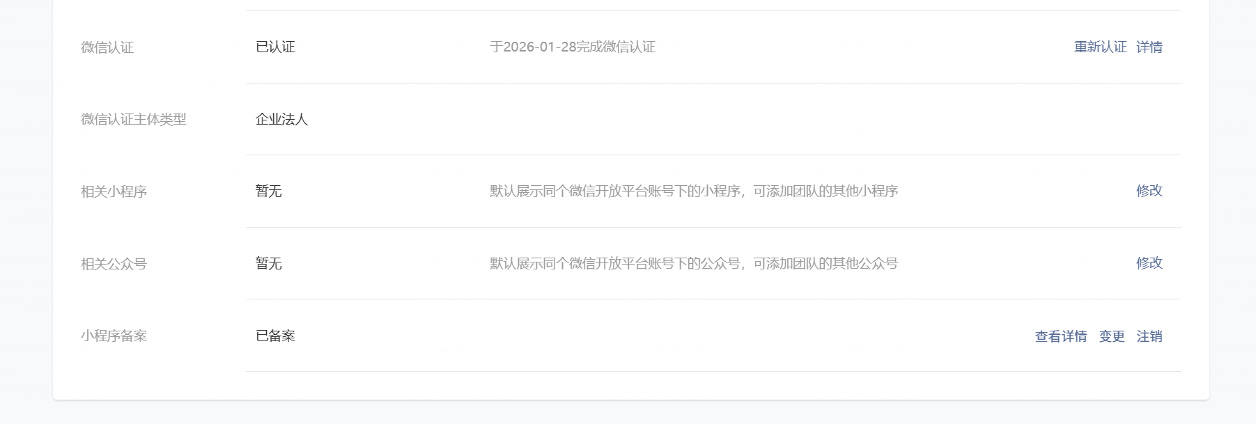 已经完成微信认证 并且备案已完成。APPID:wx6dc63ea177cd9aec