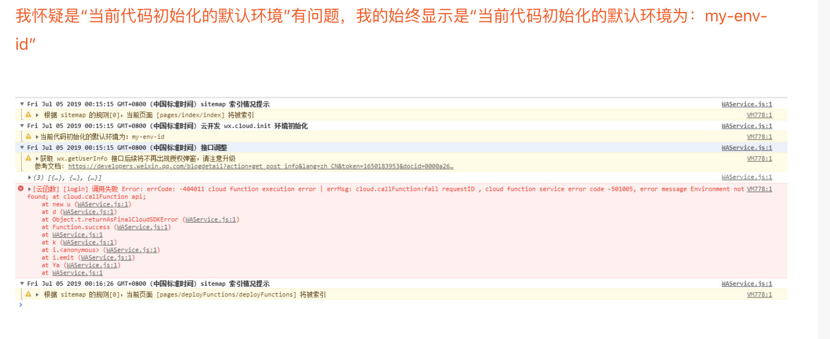 [云函数] [login] 调用失败 Error: errCode: -404011 cloud function execution error | errMsg: cloud.callFunction:fail requestID , cloud function service error code -501005, error message Environment not found; at cloud.callFunction api;