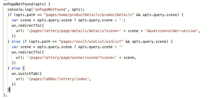 新版本审核通过之后,立即上线,但是在兼容老版本的小程序码时,依旧显示页面原生的页面不存在提示页面。