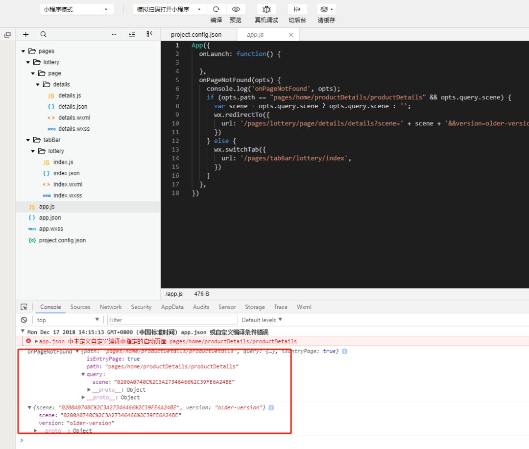 奇怪的是,只要点开一下体验版,在扫描小程序码的时候,第一次就可以正常重定向,第二次依旧还是页面不存在的提示,再点开一下体验版之后,还是第一次可以正常重定向打开小程序,这很诡异,