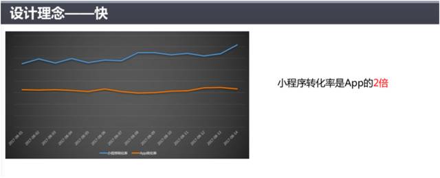 这一次,小程序则被蘑菇街誉为下一个流量洼地。蘑菇街对小程序的定位是:“既是独立于App的新战场,更是原先业务的延伸”。小程序的设计原则也从始至终贯穿了“快”这个特点。王飞认为,所谓“快”就是要让用户感受到购买的爽快。