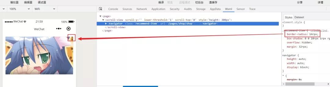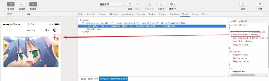- - scroll-view下创建一个元素,为其设置border-radius属性,且值低于`15rpx`