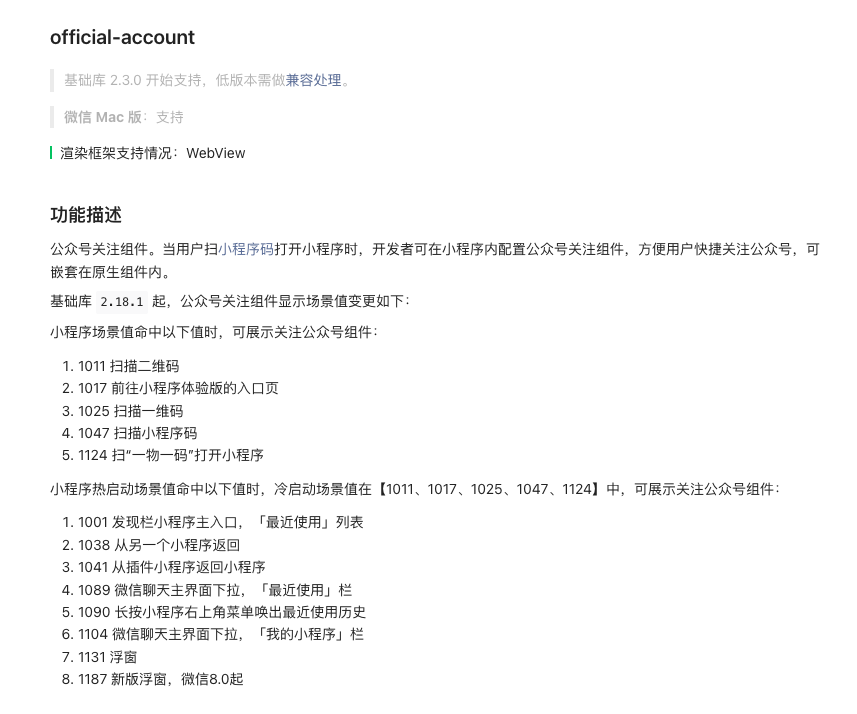 参考文档:https://developers.weixin.qq.com/miniprogram/dev/component/official-account.html