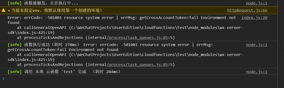 报错如图error: errCode: -501001 resource system error | errMsg: getCrossAccountToken:fail Environment not found