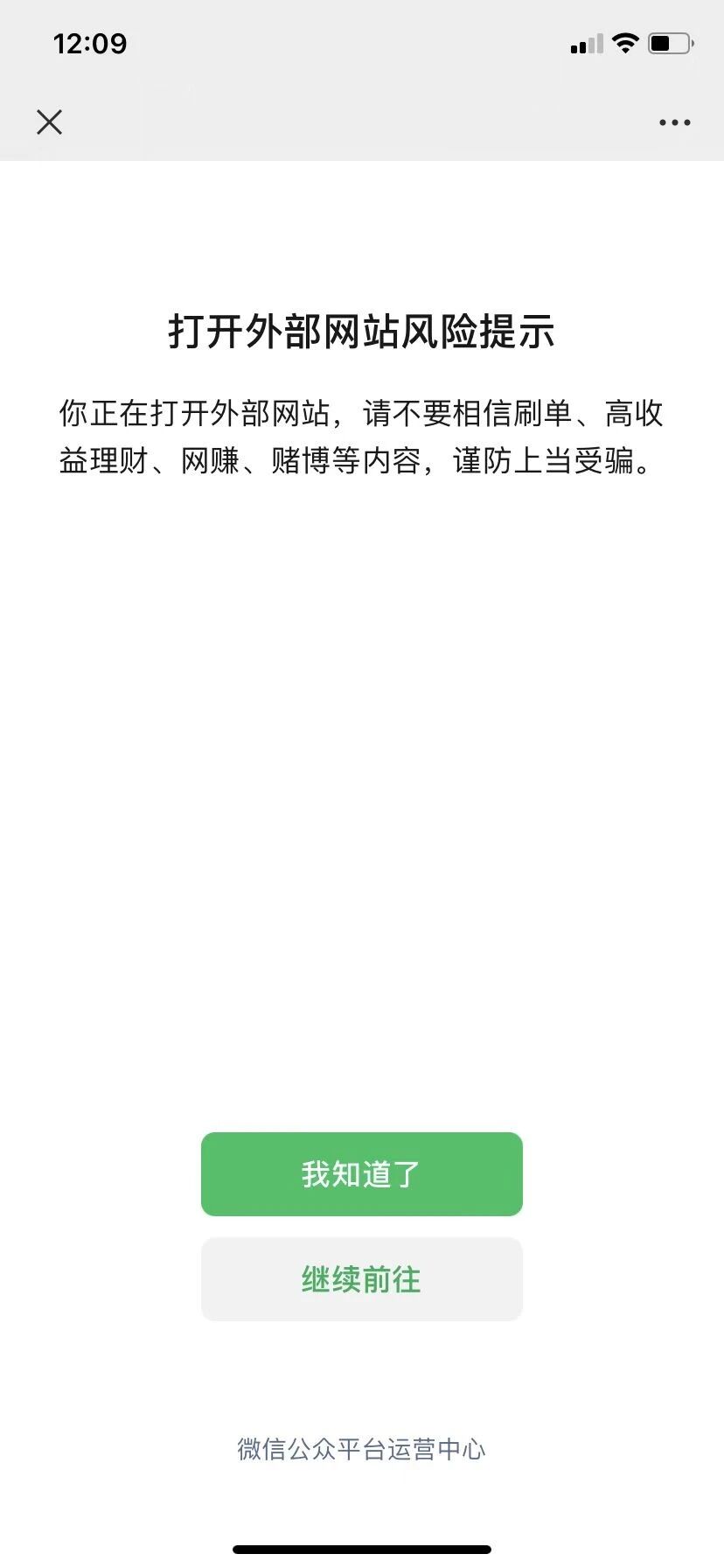 微信公众号提示外部网站风险,我在公众号打开qq.com 也是这样提示