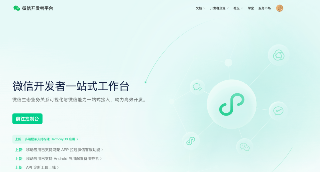微信开发者平台登录之后: