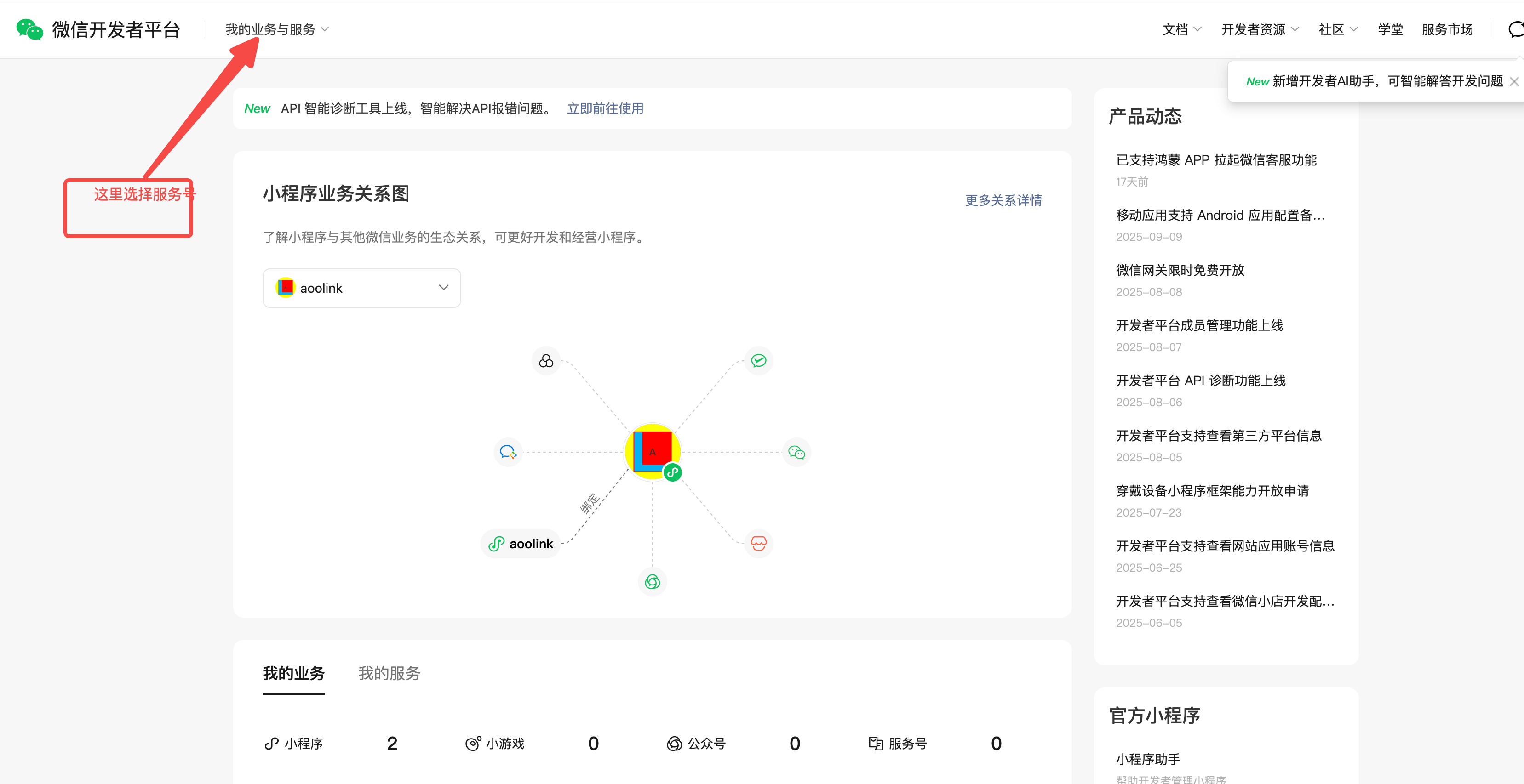 没找到服务号入口