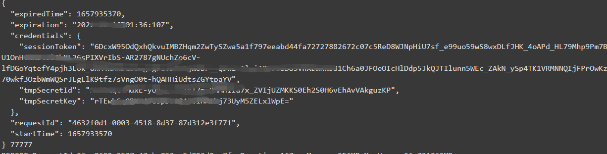 如题,我用云函数获取对象存储的tmpSecretId和tmpSecretKey,已经获取到了,并且可以打印出来,