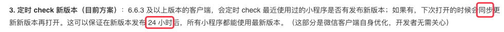 这个“24小时”是怎么来的?如果用户24小时内不打开小程序,又怎么能保证用户一定会用上新版本小程序呢?