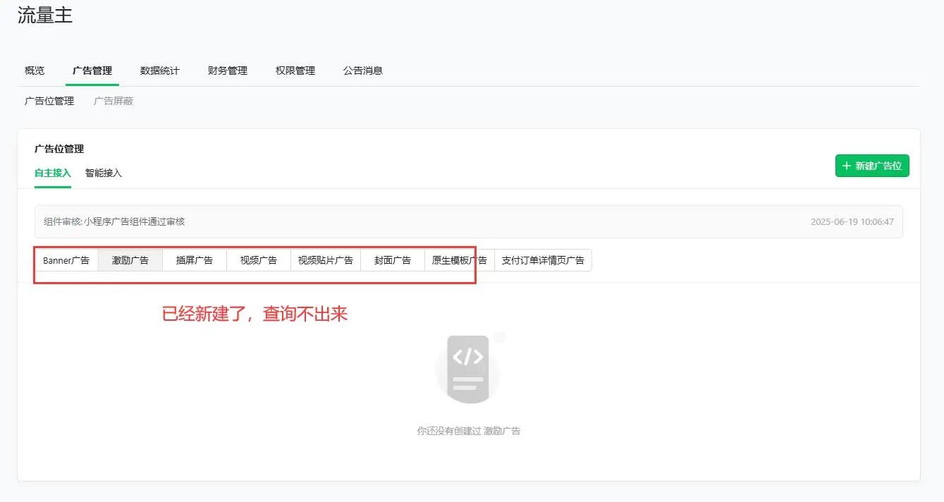 小程序后台流量主新建广告后,为什么不显示新建的广告列表呢,智能广告新建后都会有列表?