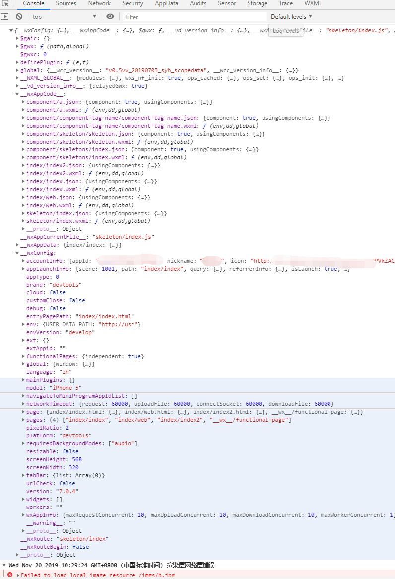 一堆变量,慢慢看console.log({ __wxConfig, __wxAppCode__, $gwx, __vd_version_info__, __wxAppCurrentFile__, __wxRouteBegin, __wxRoute, __wxAppData, global, __WXML_GLOBAL__, $gaic, $gwxc, definePlugin})