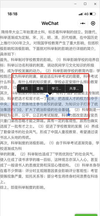 text组件上长按选择 弹出“复制”选项 使用户可复制内容
