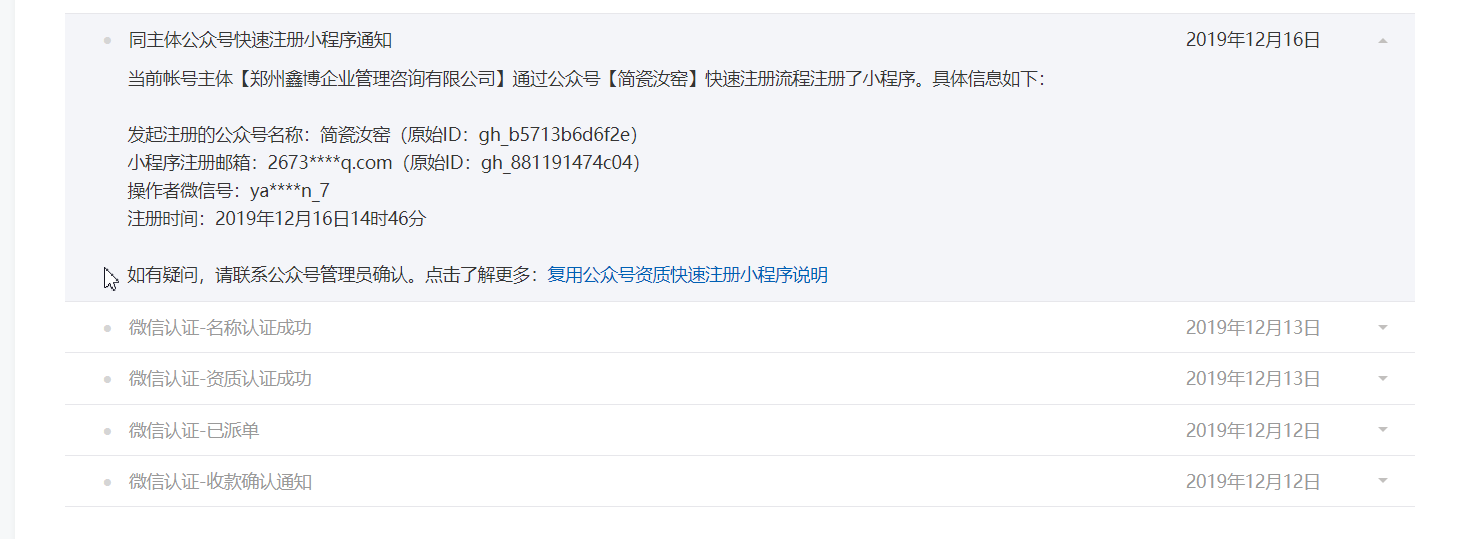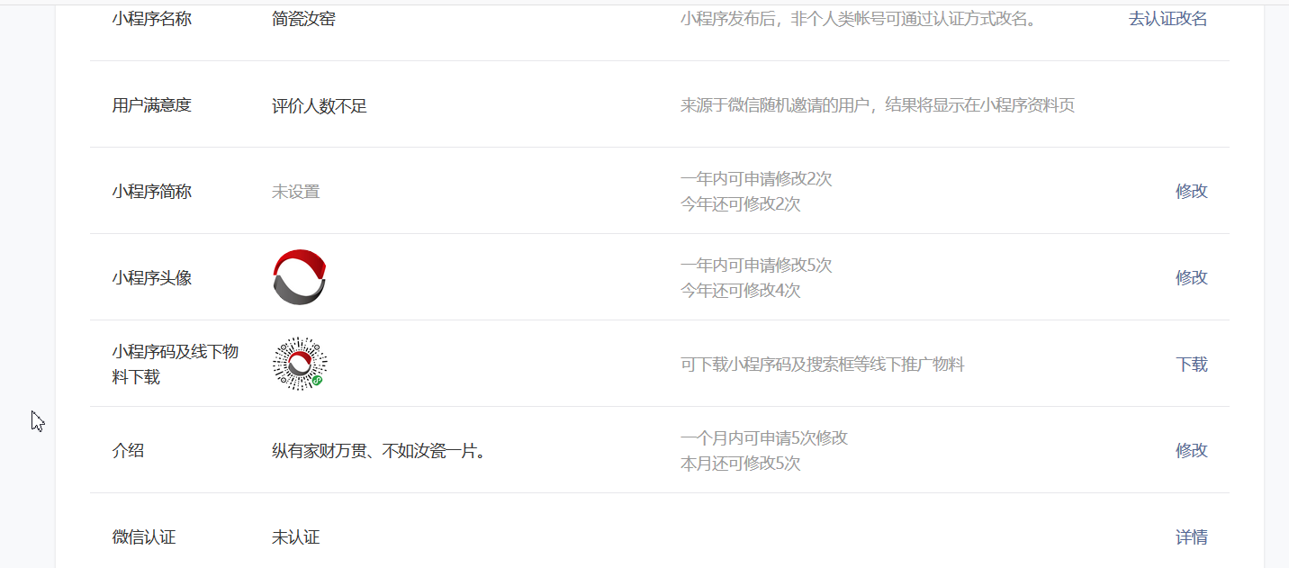 小程序是复用公众号资质注册的,但是小程序的后台缺显示未认证,无法与微信支付绑定关系,该营业执照也并未申请过其他小程序,也不存在超标的问题,截图如下: