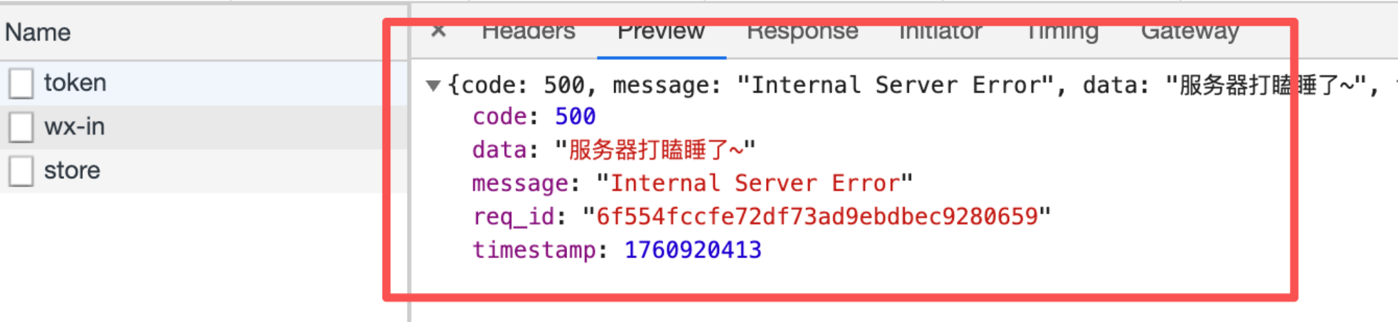 微信的wx.login不会返回500和‘服务器打瞌睡了’。你这个是访问你的request域名报错返回值吧。