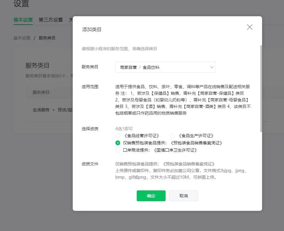 这是一份动态更新的文档,辅助开发者提前了解食品饮料的业务形态所需申请的类目,避免开发者因类目不符审核失败,开发者如有其他疑问,可以通过目前开放的咨询渠道反馈: