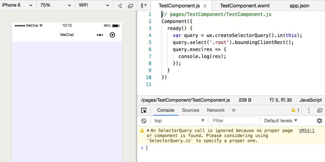 VM3308:1 An SelectorQuery call is ignored because no proper page or component is found. Please considering using `SelectorQuery.in` to specify a proper one.