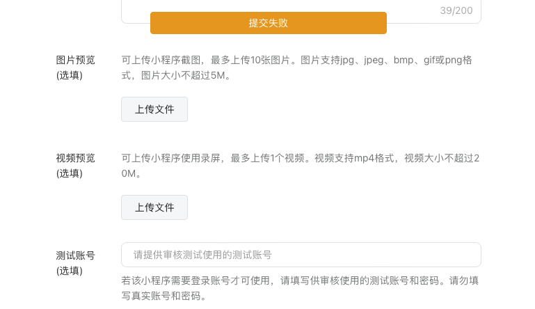 新版本提交审核页面也总是报错,无法提交。但所有必填项都填了,前端也没有提示