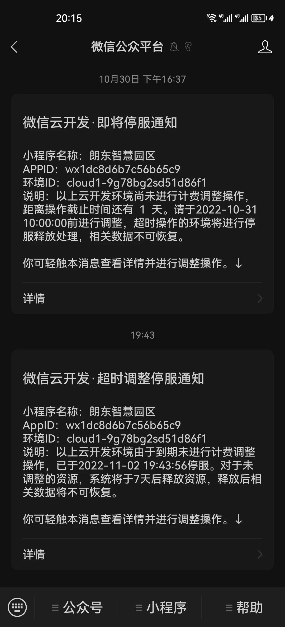 如果有使用到云开发需要切换计费调整的,可前往「云开发控制台」或者搜索「微信云服务助手」小程序进行操作。