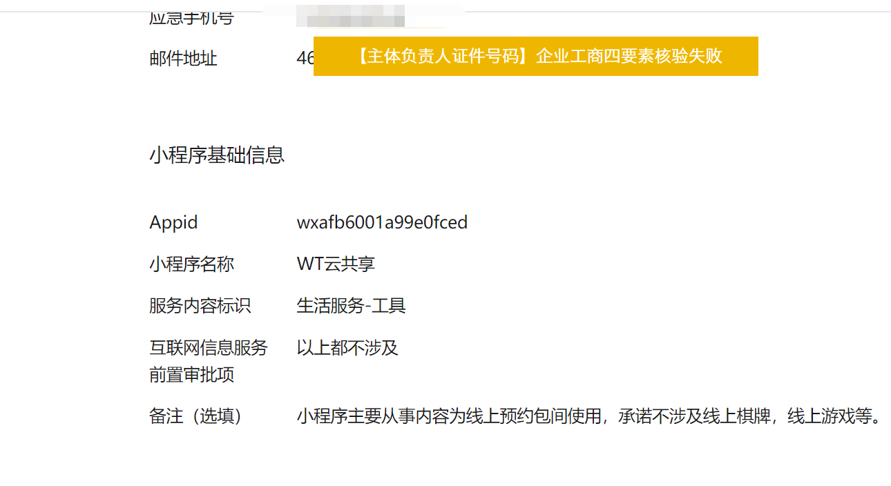 你好,请私信提供完整界面报错截图和营业执照、小程序APPID以便核实。