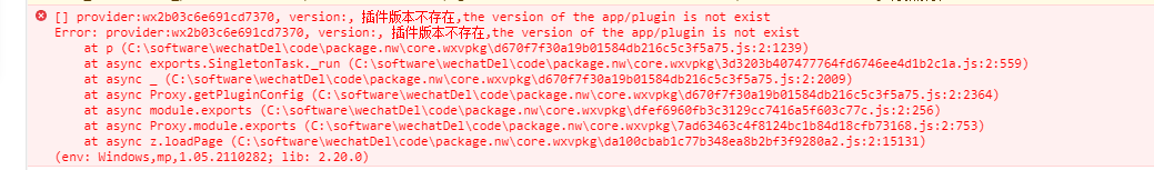 provider:wx2b03c6e691cd7370, version:, 插件版本不存在,the version of the app/plugin is not exist?