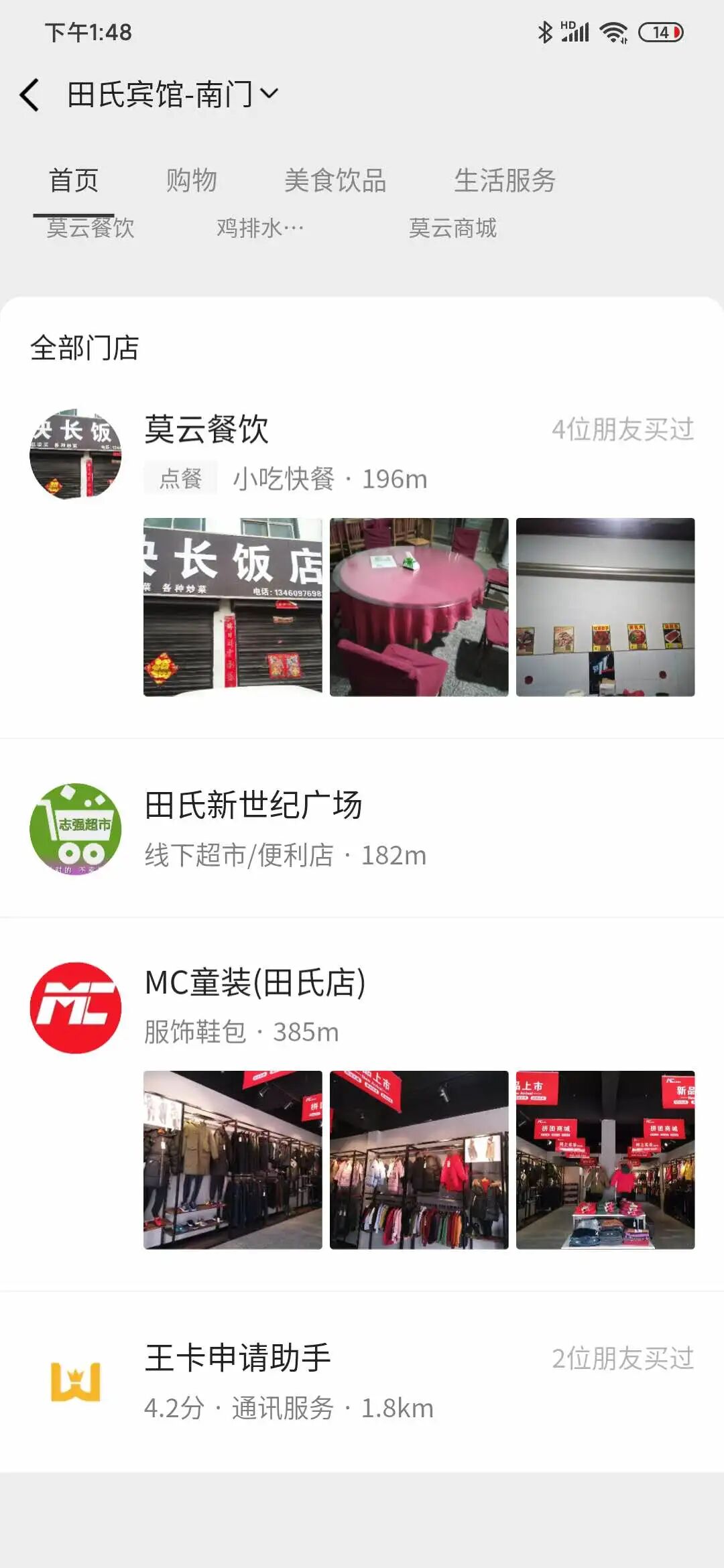 你好,核实用户的附近小程序正常展示,查看方法:点击附近小程序列表输入地址:内黄县人民政府,选择美食饮品类目即可查看。