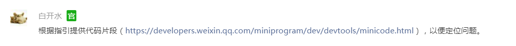 根据指引提供代码片段(https://developers.weixin.qq.com/miniprogram/dev/devtools/minicode.html),以便定位问题。