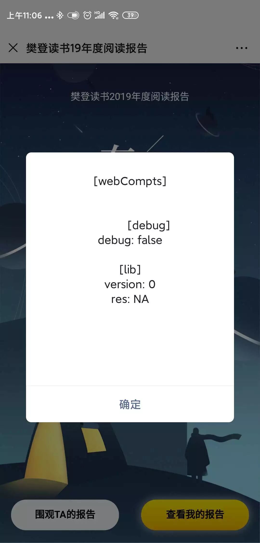 bug:当页面有自定义分享功能时,长按右上角三个点出现不明对话框。