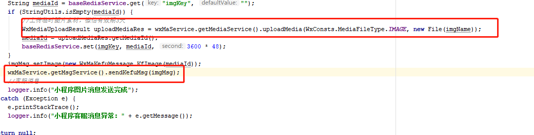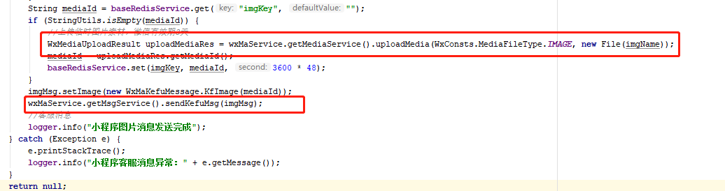 微信返回的错误提示意思是上传文件出错了嘛?我们的业务逻辑封装在一起了,抛异常看不出是哪里报错了,如下