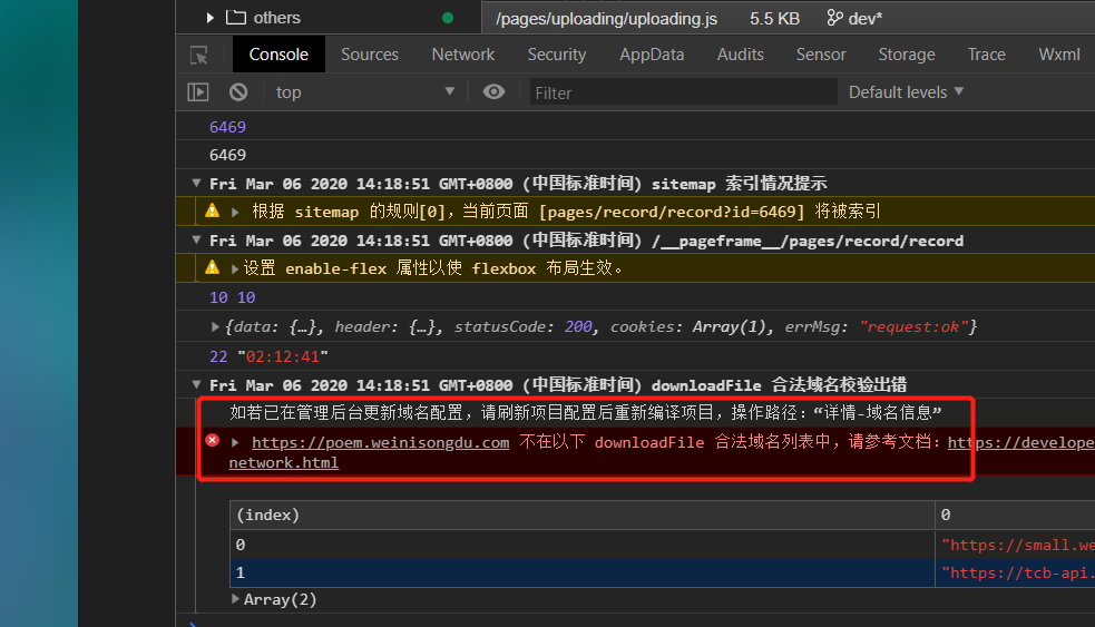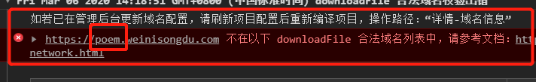 请求到数据中的诗词文件 如图中 https://poem.weinisongdu.com downloadFile配置过 https://poem.weinisongdu.com 还是提示不行