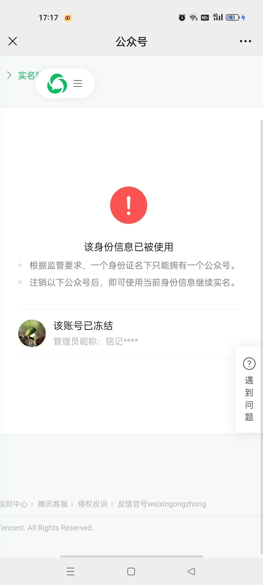 以前的公众号被冻结了,如何解除身份证的绑定?而且通过账号找回也显示不支持此公众号找回?该怎么解除身份证绑定?我想要重新注册一个公众号。