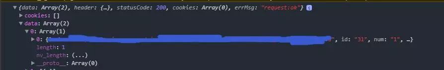 【2】但是在wx.request的success中console.log(res)却出现后端没有返回的字段,如num