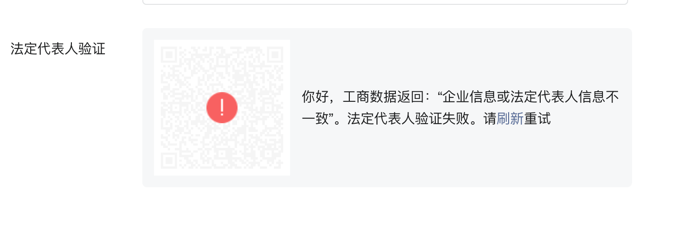 认证小程序的时候提示,你好,工商数据返回:“企业信息或法定代表人信息不一致”。法定代表人验证失败。请刷新重试